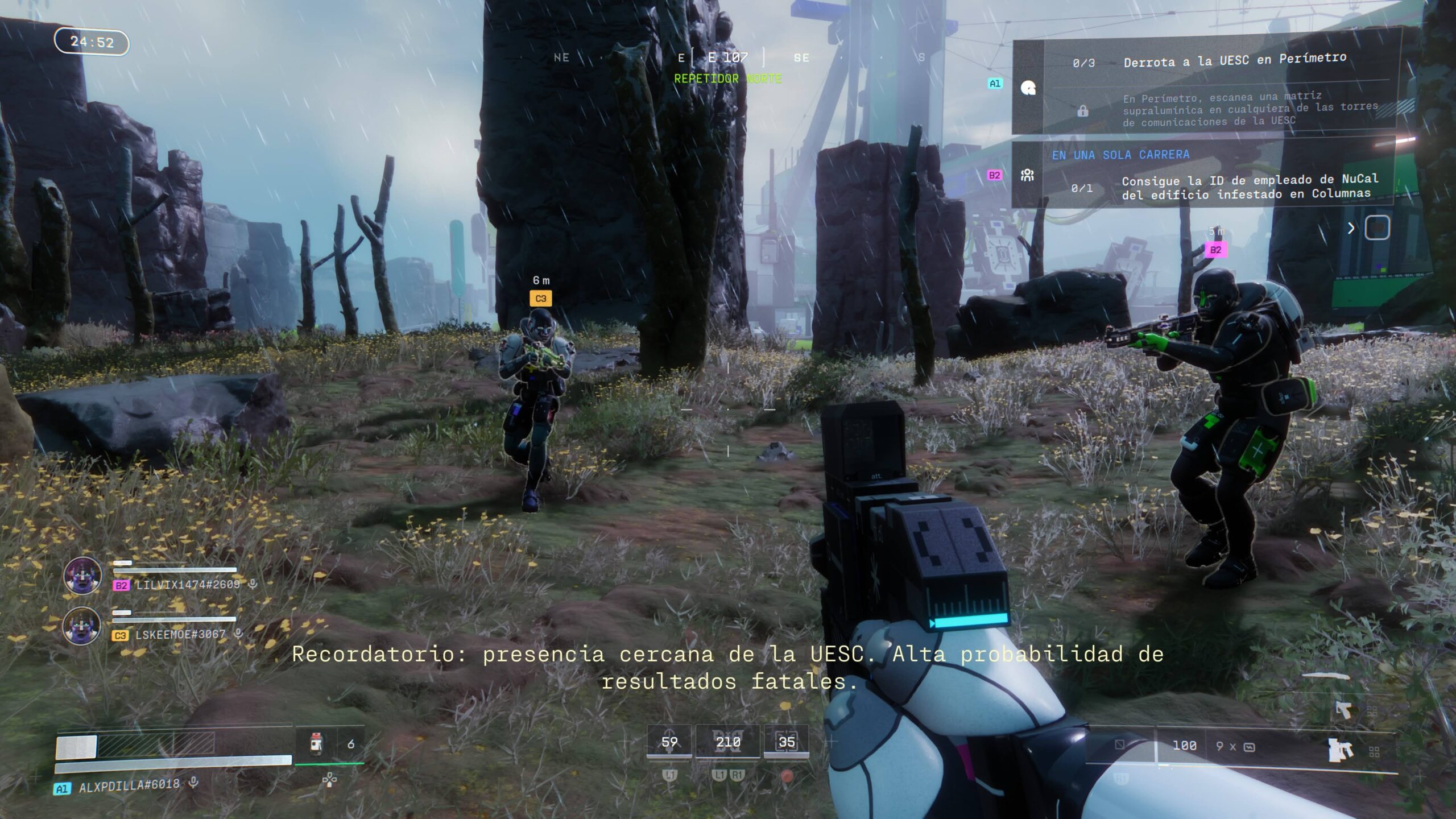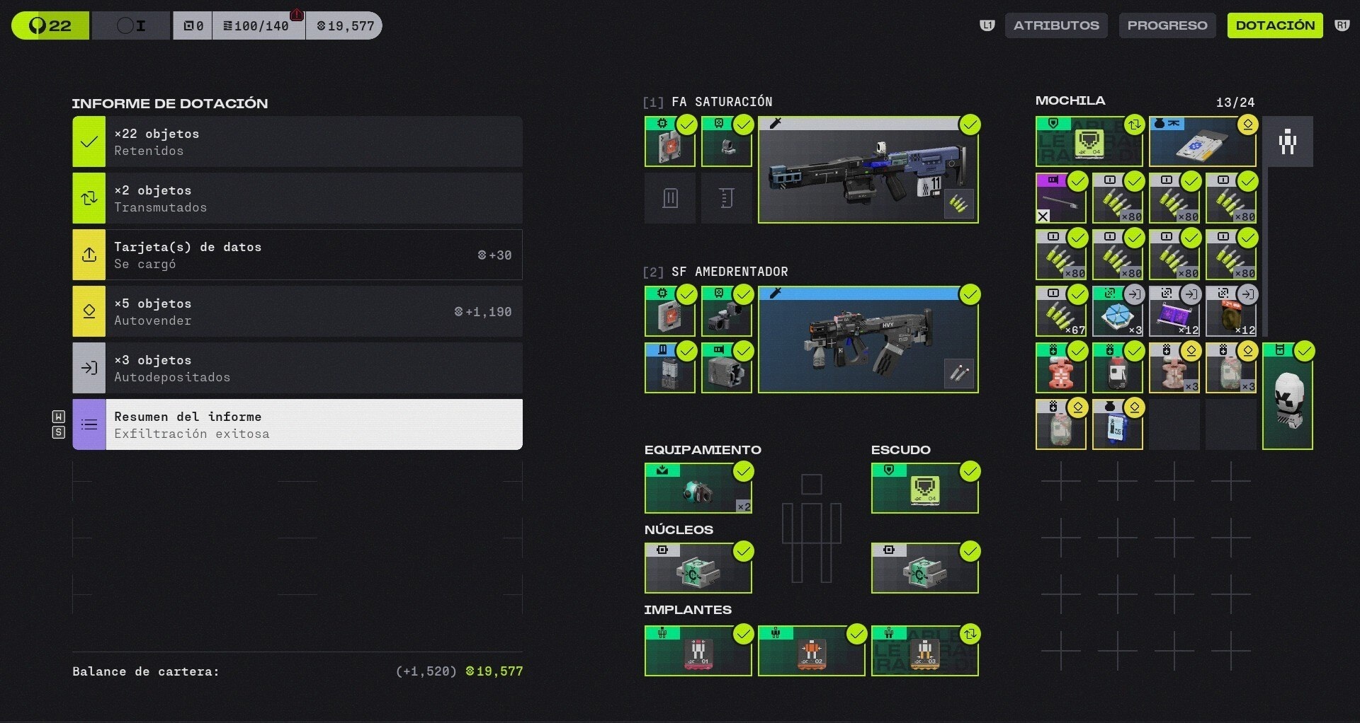 Sin embargo, durante las partidas algunos efectos de sonido no logran transmitir con claridad la posición o el tipo de enemigo cercano, lo que reduce parte de la tensión que suele caracterizar al género. El juego incluye una gran cantidad de objetos: implantes, módulos, consumibles, mejoras de equipo y recursos destinados a diferentes corporaciones. Estos elementos permiten avanzar en contratos específicos, desbloquear ventajas pasivas o acceder a nuevas piezas de equipamiento. Aunque esta profundidad puede resultar interesante a largo plazo, también provoca que la experiencia inicial sea algo confusa. La identificación de muchos objetos no resulta intuitiva y obliga al jugador a familiarizarse poco a poco con un sistema bastante cargado de información.