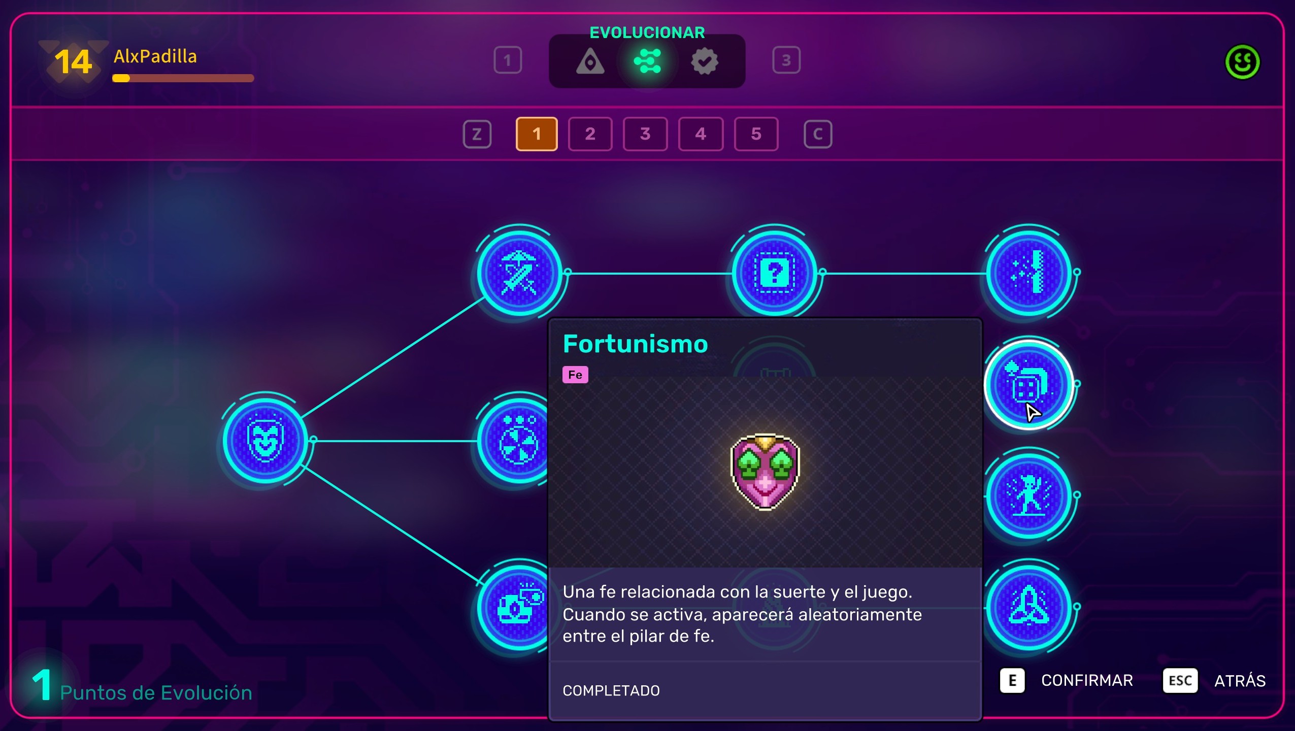 Pero la progresión no se detiene ahí: fuera de las partidas, ahora desbloqueamos elementos como habitaciones secretas, salas especiales (como pistas de baile) y un sistema de evoluciones que altera el desarrollo de cada run, lo que mantiene fresca la experiencia incluso tras muchas horas. Además, se introduce un sistema de fe que responde a nuestras decisiones durante la partida (como gastar monedas, apostar o criar mascotas) y que, al llenarse, desbloquea salas especiales ligadas a distintas temáticas como el azar, el consumismo o la tecnología. Esta mecánica añade una capa estratégica adicional, aunque aún requiere mejoras. Desde su acceso anticipado, Neon Abyss 2 dejó claro que no escatima en cantidad. La versión final ofrece jefes colosales, armas bizarras, Hatchmon, nuevos niveles, personajes, modos y un sinfín de objetos. Si los desarrolladores cumplen con las prometidas actualizaciones, podríamos estar ante un roguelike inagotable. Como en el original, cada run se divide en cinco niveles con salas semiprocedurales.